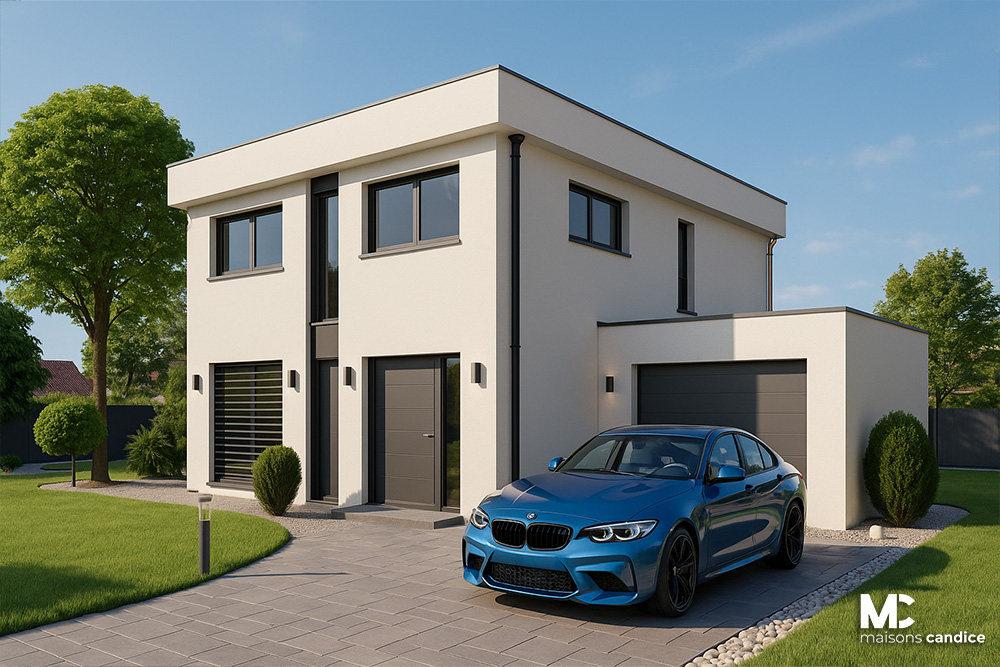 Grâce à ses lignes élégantes et son toit plat, notre maison atypique Emma allie à la perfection modernité et nouvelles tendances architecturales.